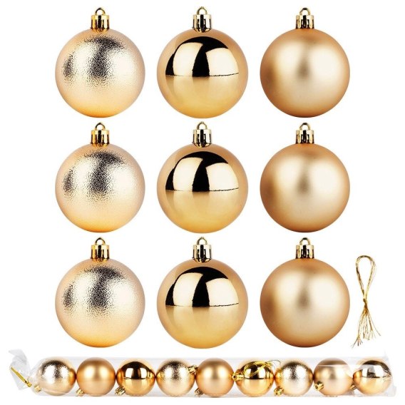 Bombki wykonane są z najwyższej jakości tworzywa, więc nie potłuką się. Są dużo bardziej trwalsze i bezpieczniejsze od szklanych bombek. Swoim wyglądem przypominają bombki szklane. Idealne do domów, gdzie są małe dzieci oraz zwierzęta. Złoty kolor bombek dodaje klasy i elegancji świątecznym dekoracjom.
