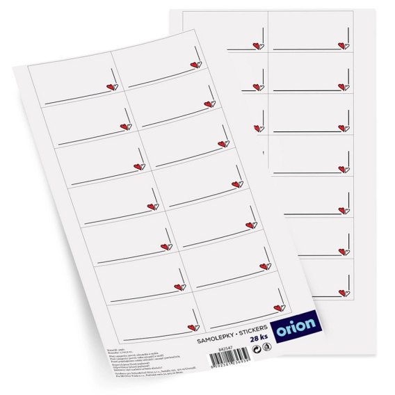 Etykiety Samoprzylepne na Słoiki ORION 28 szt. Prostokąt z Sercem