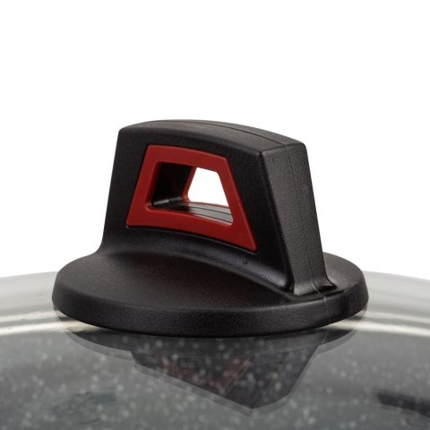 WYGODNY W UŻYTKOWANIU - Posiada ergonomiczny, odporny na ciepło uchwyty wykonany z bakelitu w kolorze czarnym z czerwonymi wstawkami z tworzywa. Ogromnym atutem jest to, że rączka pozostaje chłodna nawet po wielu godzinach gotowania i umożliwia łatwe korzystanie z garnka. W zestawie szklana pokrywa z odpowietrznikiem na ucieczkę nadmiaru pary.