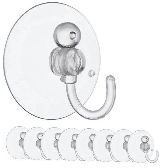 - SAMOPRZYLEPNE - Zestaw 8 sztuk małych haczyków z przyssawkami. Każdy z haczyków ma średnicę 3,5 cm i okrągły kształt.