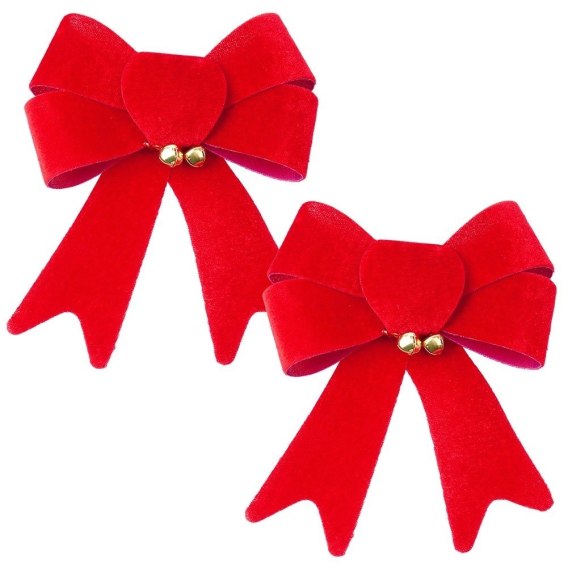 Kokardy wykonane z miękkiego, przyjemnego w dotyku weluru w kolorze czerwonym. Kokardy prezentują się niezwykle efektownie. Dodatkowo posiadają złote dzwoneczki.