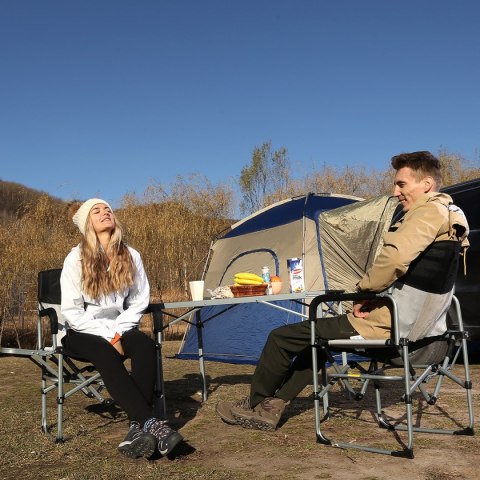 Składane krzesło kempingowe KING CAMP Director ze składanym stolikiem bocznym.