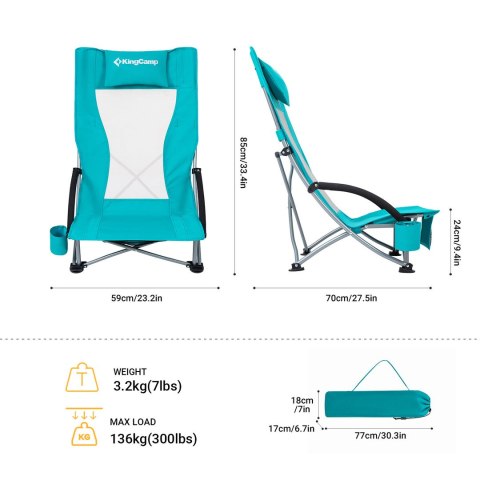 • Krzesło Turystyczne Kempingowe Wędkarskie Składane KING CAMP Cyan Wysokie