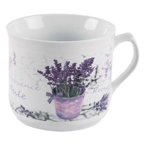 Duży kubek o pojemności 700 ml. Wykonany z wysokiej jakości ceramiki z pięknym dekorem lawendy. Idealny do picia dużej porcji herbaty oraz kawy. Posiada płaskie dno, dzięki czemu można podgrzewać go zarówno na piecu jak również na kuchence elektrycznej. Można podgrzewać w mikrofalówce. Oryginalny produkt czeskiej marki Orion. Wyprodukowano zgodnie z europejskimi standardami.