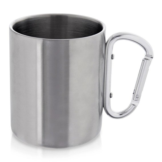 Kubek turystyczny z praktycznym uchwytem w formie karabińczyka. Idealny podczas pikników i wypadów za miasto, dzięki temu, że jest nietłukący możemy go ze sobą wszędzie zabrać. Kubek może pełnić rolę garnuszka do podgrzewania np. herbaty przy ognisku. Można stosować go na co dzień. Łatwy w czyszczeniu i użytkowaniu. Stalowy kubek to niezbędny element wyposażenia każdego górskiego wędrowca, a także świetny pomysł na prezent.