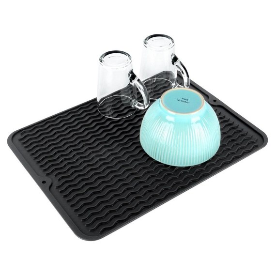 • Mata do Suszenia Naczyń 40 x 30 cm Silikonowa Czarna Zwijana VILDE