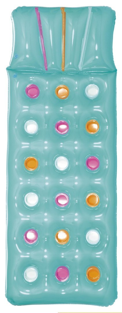 Leżak posiada oddzielną nadmuchiwaną poduszkę i część do leżenia, co zapewnia większy komfort. Jego wymiary po napompowaniu wynoszą 188 x 71 cm, co czyni go bardzo popularnym modelem. Leżak jest dostępny w atrakcyjnym turkusowym kolorze.