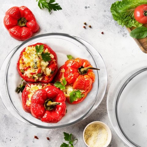 <li><strong>PRAKTYCZNE</strong> - Wyposażone w uchwyty ułatwiające przenoszenie. Pokrywa chroni potrawy przed wysychaniem podczas pieczenia i może także pełnić funkcję drugiego naczynia do zapiekania.</li>