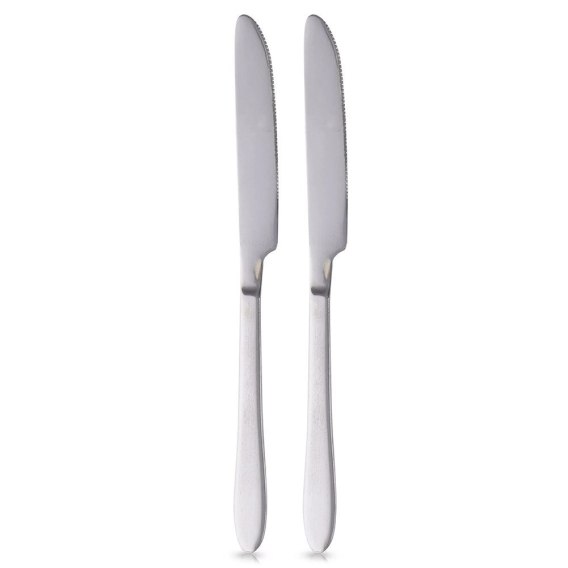 <li><strong>KLASYCZNE</strong> - Zestaw dwóch noży obiadowych w srebrnym kolorze. Noże mają długość 24 cm i są w połysku.</li>