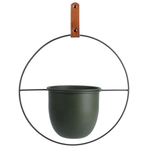<p>Zawieszana na skórzanej zawieszce osłonka na doniczkę. Posiada modny design, więc prezentuje się bardzo efektownie, niezależnie od tego gdzie jest zawieszona. Możemy przechowywać w niej kwiaty, ale równie pięknie będą prezentować się w niej zioła. Zielony kolor będzie dobrze współgrał z zielenią roślin. Utrzymana w industrialnym stylu typu loft. Oryginalny pomysł na prezent dla miłośników roślin. <strong>Oryginalny produkt holenderskiej marki Home Styling Collection</strong><strong>.</strong> Wyprodukowano zgodnie z europejskimi standardami.</p>