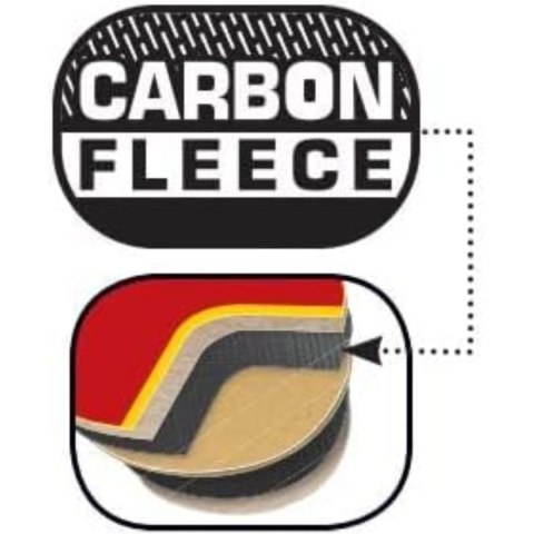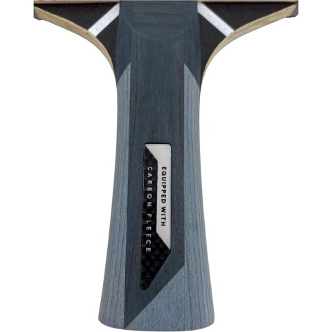 Dzięki dodaniu włókna węglowego między warstwawami okleiny rakietka jest lżejsza, mocniejsza i trwalsza. Dzięki temu uzyskujemy lepszą kontrolę piłki jak i rotację. Ponadto układ włókien umożliwia oddawanie takiego samego idealnego strzału na całej powierzchni rakietki.