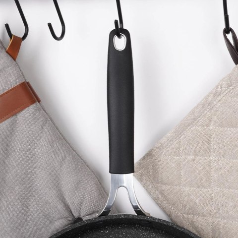 <li><strong>WYGODNA W UŻYTKOWANIU</strong> - Ergonomiczny uchwyt gwarantuje wygodne i bezpieczne użytkowanie, zapewniając pewny chwyt podczas gotowania. Patelnia wyposażona jest również w praktyczny otwór umożliwiający jej zawieszenie np. na relingu kuchennym.</li>