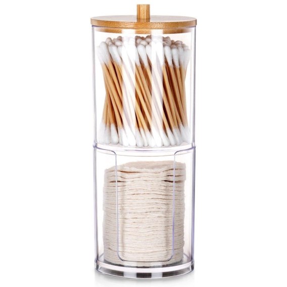 ✅ Dwupoziomowy pojemnik na patyczki i płatki kosmetyczne 2w1