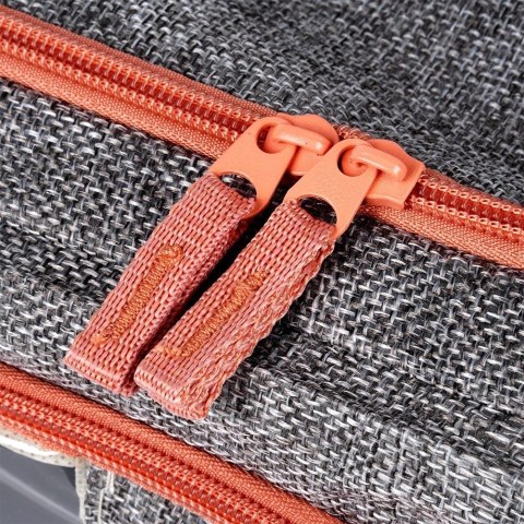 ⭐ Wysoka jakość materiału - Pokrowiec wykonany z wytrzymałej tkaniny poliestrowej w melanżowym, szarym kolorze. Zamek jest w kolorze łososiowym.