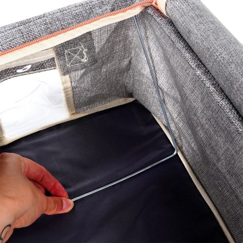 ⭐ Transparentne okienka i metalowy stelaż - Pokrowiec posiada przezroczyste okienka, umożliwiające szybki podgląd zawartości bez konieczności otwierania, co ułatwia organizację i przechowywanie. Wnętrze pokrowca posiada metalowe stelaże, które nadają mu stabilny kształt, zapobiegając zapadaniu się i ułatwiając przechowywanie ubrań oraz pościeli w estetyczny i uporządkowany sposób. Możliwość złożenia na płasko.