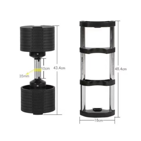 - Wymiar całkowity hantla w wadze maksymalnej: 43,5 x 17,5 cm