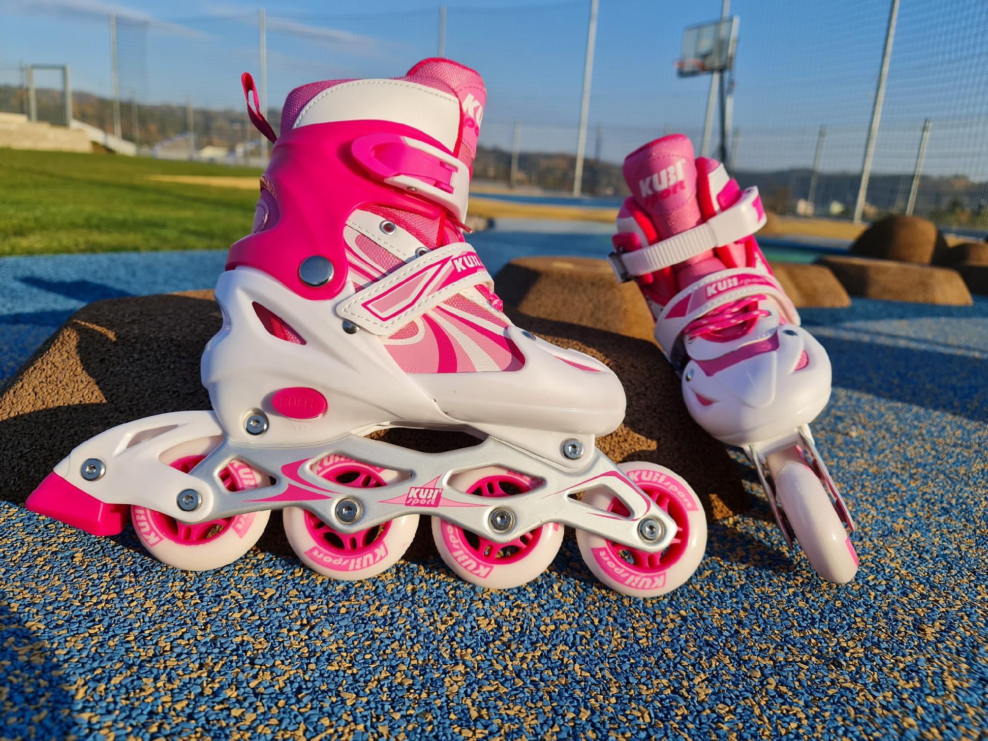 • Rolki dla Dzieci Dziecięce Regulowane Różowe Solidne KUBISPORT r. 39-42