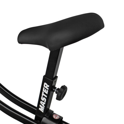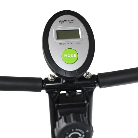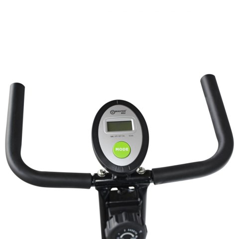 Składany rower treningowy Master R02 jest idealny do pomieszczeń w których jest mało miejsca. Po każdym treningu w prosty sposób można złożyć rower i schować go w szafie, pod łóżkiem, czy też w innych miejscach, co skutecznie oszczędza miejsce. Rower posiada komputer, który wyświetla najczęściej używane funkcje, takie jak czas, prędkość, dystans, spalone kalorie. Rower jest wyposażony w koło zamachowe o obciążeniu 1,25 kg i kółka transportowe. Rower Master R02 jest przeznaczony do użytku domowego.