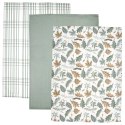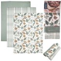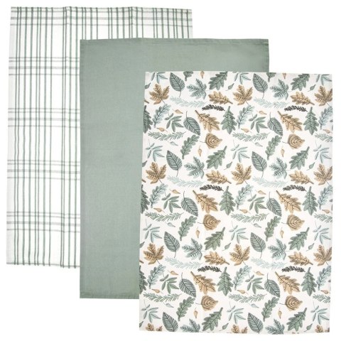 <li><strong>CHŁONNE</strong> - Ścierki wykonane są ze 100% bawełny, co zapewnia im doskonałą chłonność. Nadają się do prania w temperaturze 40°C. Ścierki w zestawie występują w trzech różnych wzorach w odcieniach zieleni i bieli. Jedna ze ścierek ma wzór z motywem liści.</li>