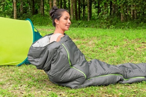 Niezawodny towarzysz, zapewniający najwyższy komfort spania na świeżym powietrzu! Wykonany z wysokiej jakości poliestru 210T i wyposażony w izolację termiczną z pustych włókien, zapewnia niezawodną trwałość. Mumia z półokrągłym zagłówkiem zapewnia dodatkowe ciepło i wygodę, a izolująca ochrona wzdłuż zamka błyskawicznego i ochronny panel na ramionach chronią przed przeciągami i zimnem.