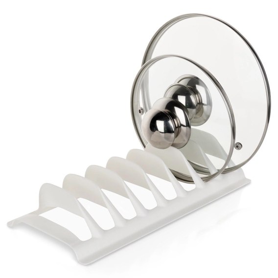 Z jego pomocą wyeksponujemy ulubione talerze oraz zachowamy porządek podczas przechowywania pokrywek. Zapobiega uszkodzeniom pokrywek.