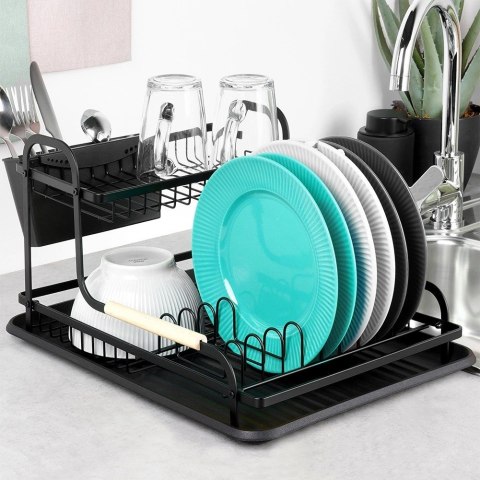 Suszarka do Naczyń na Talerze Sztućce 2-Poziomowa Czarna VILDE 48,5 x 32 cm