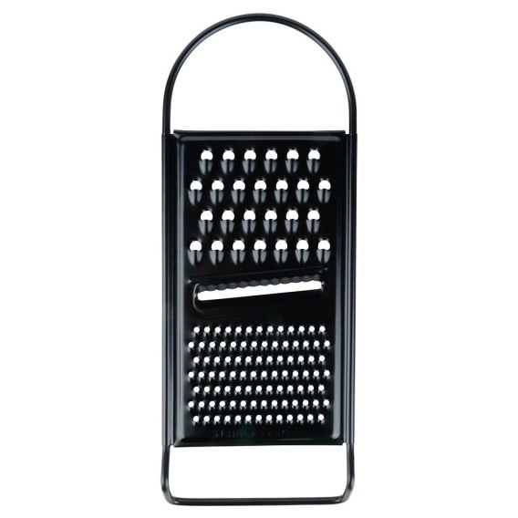 Płaska tarka kuchenna z trzema różnymi ostrzami, każde z nich przeznaczone do innej czynności. Posiada wygodny uchwyt, co ułatwia użytkowanie. Łatwa w czyszczeniu i poręczna. Niezbędna w każdej kuchni. Całkowicie bezpieczna dla zdrowia i neutralna dla żywności.