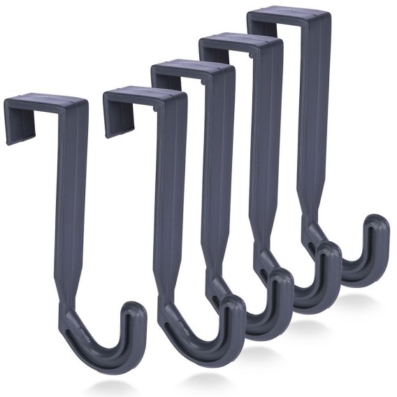 - ZAWIESZANE - Zestaw pięciu wieszaków zakładanych na drzwi. Każdy z haczyków ma wymiar 1,5 x 3,5 x 9 cm.