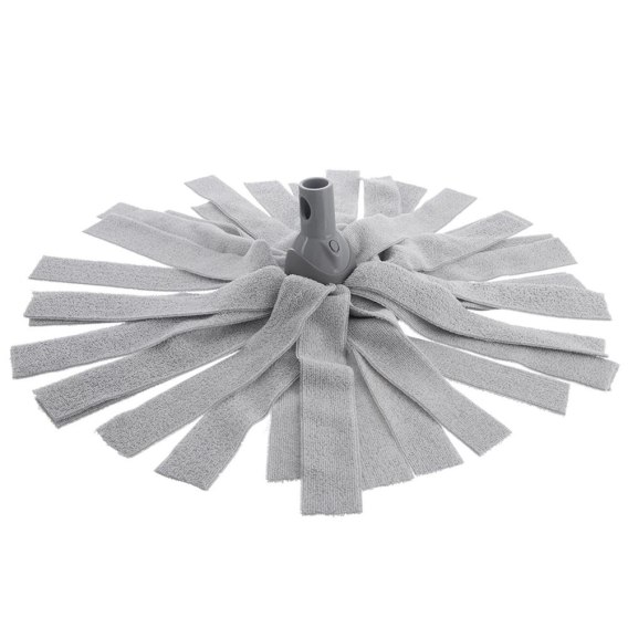 Płaskie frędzle skutecznie zbierają kurz, brud i nadmiar wody, ułatwiając sprzątanie i pozostawiając powierzchnie czyste. Wykonane z mikrofibry w szarym kolorze. Element mocujący mopa wykonany jest z tworzywa w szarym kolorze.