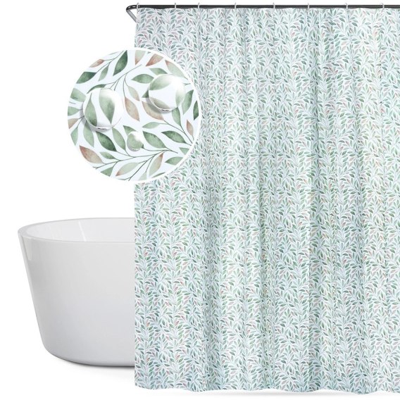 Zasłona prysznicowa do łazienki o wymiarach 180 x 200 cm wraz z 12 haczykami w zestawie. Zapewnia intymność podczas kąpieli.