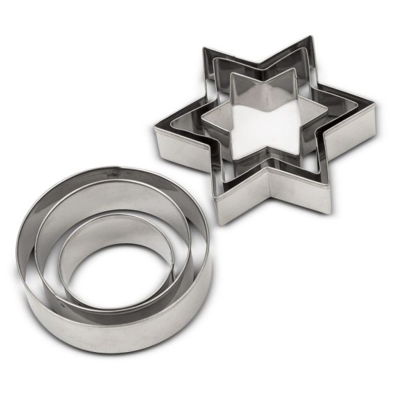 - PRAKTYCZNE - Wykrawacze cukiernicze w kształcie gwiazdy i koła. W komplecie 6 sztuk wykrawaczy.